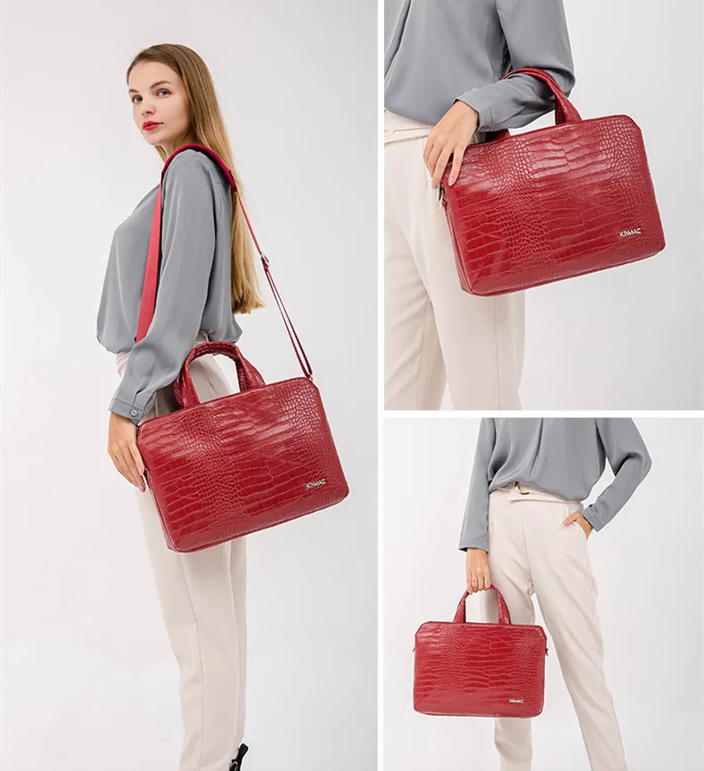 The sophisticated crocodile pattern adds texture and visual interest while maintaining professional elegance. Available in classic black, bold red, or royal blue options, this briefcase allows you to express your personal style while maintaining a polished business appearance. The clean lines and structured silhouette project confidence and competence in any professional setting.