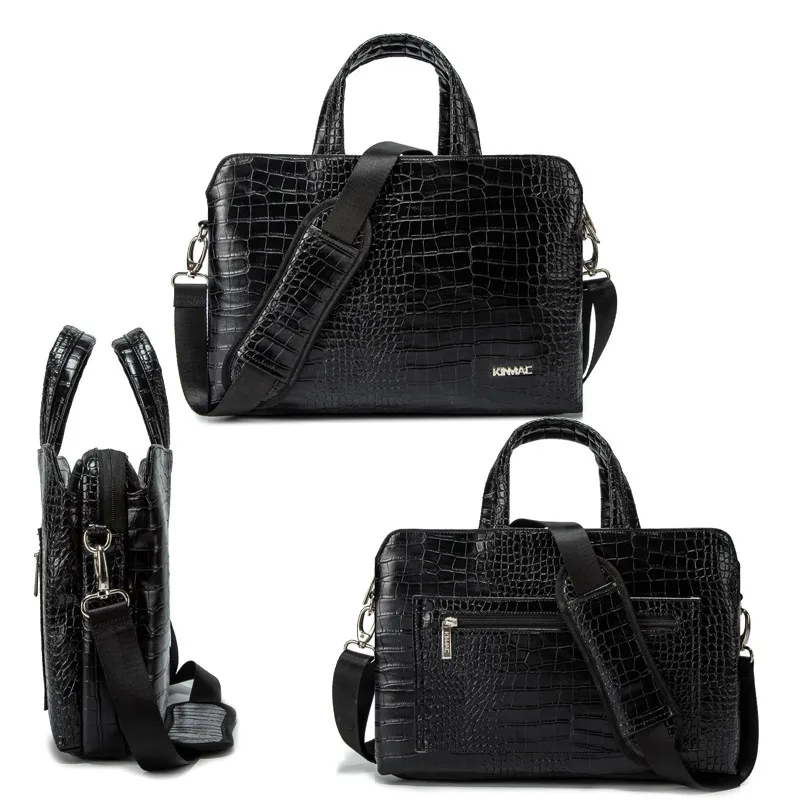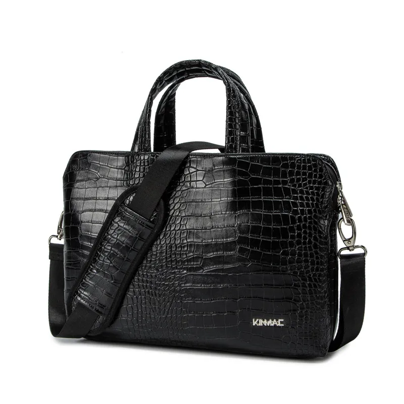 This professional briefcase is crafted from genuine cow leather with an elegant crocodile pattern texture that elevates its visual appeal while maintaining durability. The premium leather undergoes a specialized treatment process to achieve the distinctive crocodile-embossed finish, creating a luxurious look that stands out in professional environments.