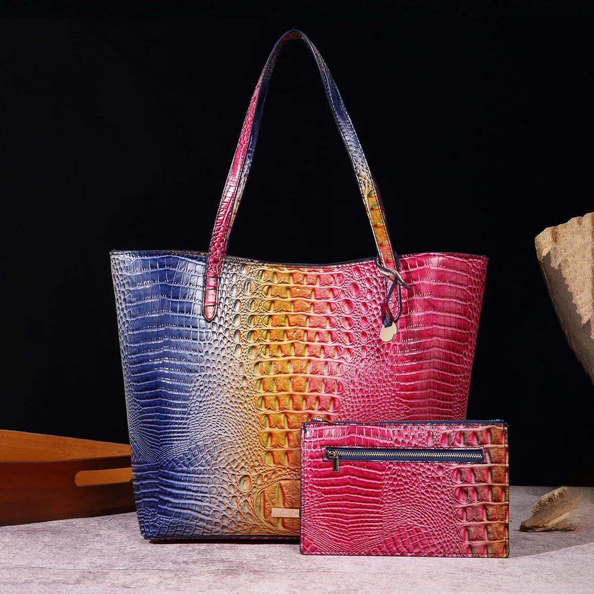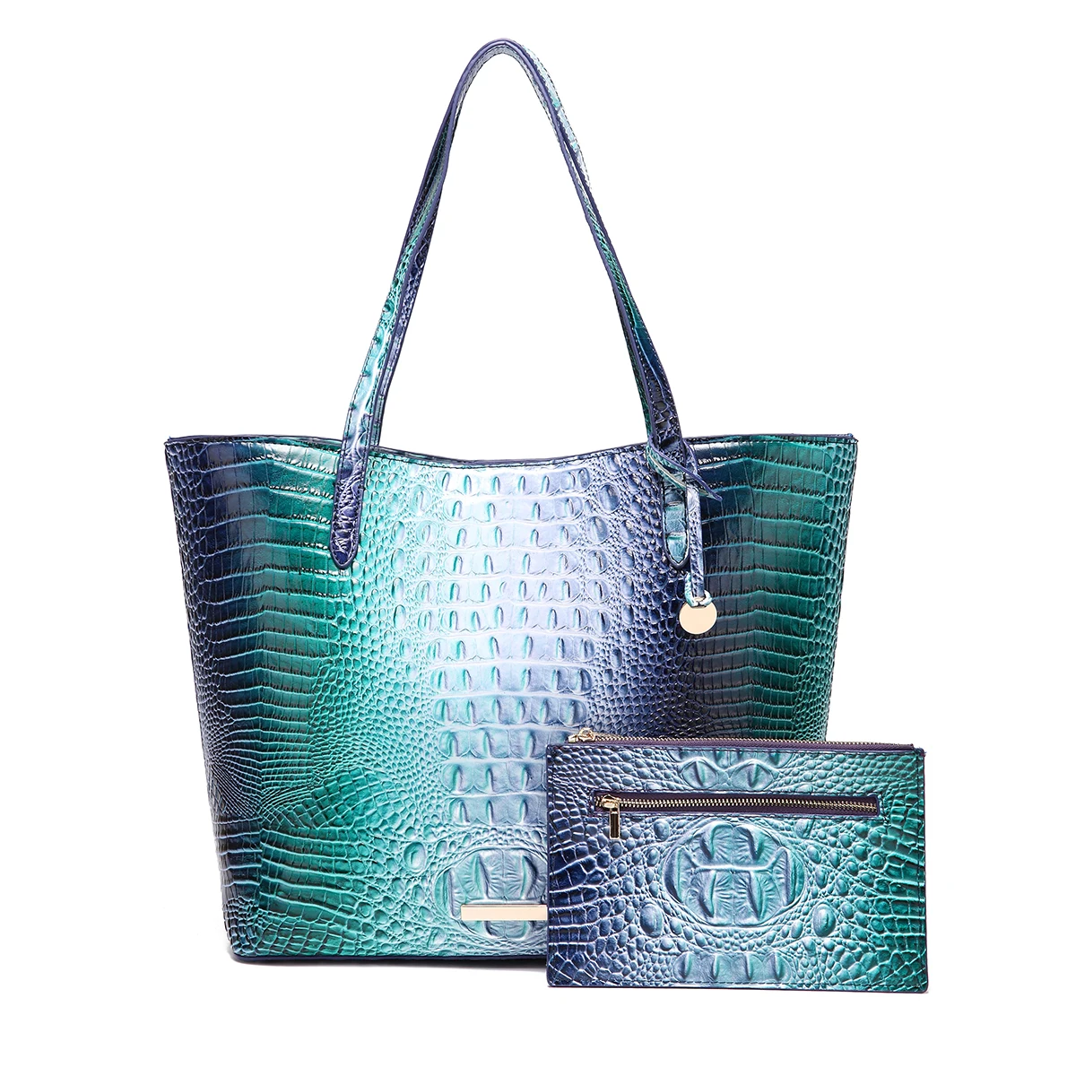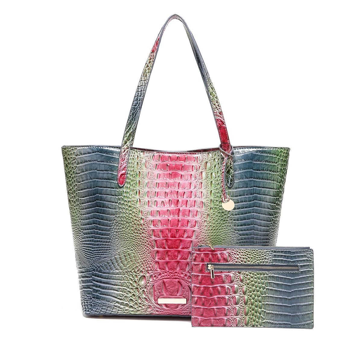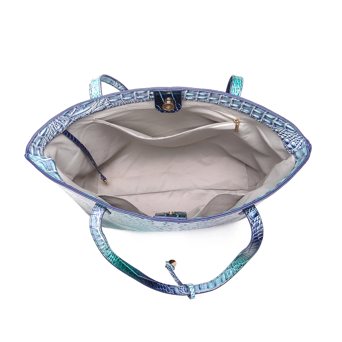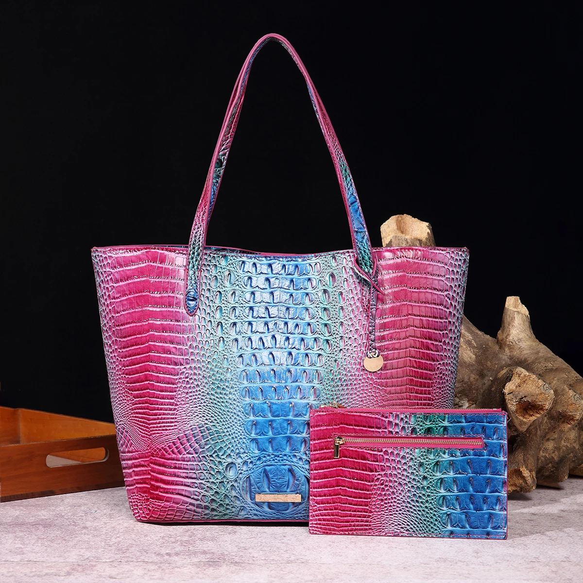 This crocodile-pattern tote balances sophisticated style with practical functionality, making it perfect for the modern professional woman. The structured silhouette maintains a polished appearance throughout your day while offering enough flexibility to accommodate varying workloads. The two-piece design allows you to adjust your carrying capacity to match your daily needs—take the full set for busy days or just the essentials when traveling light. The classic tote silhouette with subtle textural interest ensures this bag remains appropriate for various professional environments, from corporate offices to creative workspaces.