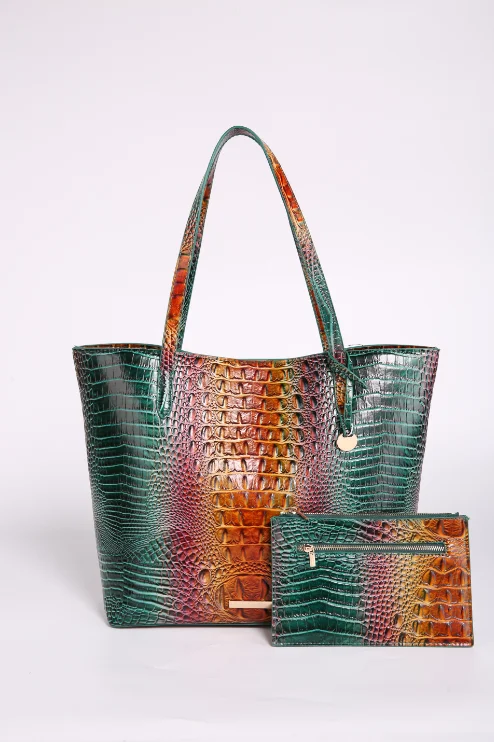 Crocodile Pattern Vegan Leather Work Tote with Matching Pouch – Professional Women’s Shoulder Bag