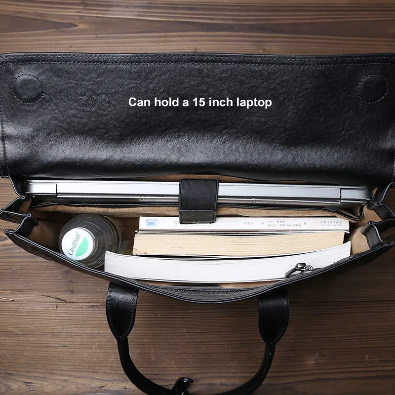 This briefcase is crafted from genuine full-grain cowhide leather that’s been vegetable-tanned to create a rich, natural finish that improves with age. Unlike lower-quality leathers, this premium head layer cowhide reveals unique natural grain patterns that create a one-of-a-kind appearance. The vegetable tanning process ensures environmental sustainability while producing leather that develops a beautiful patina over time.