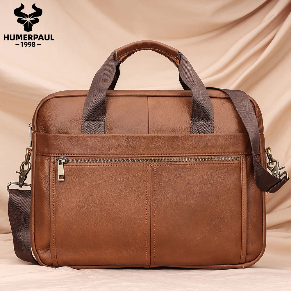 This briefcase is crafted from premium full-grain cow leather, the highest quality leather available that retains the natural grain and strength of the hide. Unlike lesser grades, this material develops a distinctive patina over time, becoming more attractive with age while maintaining its structural integrity. The quality extends to every detail with durable metal zippers and hardware that withstand daily use without failing. Precise stitching and finished edges ensure longevity even when the bag is frequently loaded with heavy items. This superior craftsmanship results in a bag that not only looks professional but will serve you reliably for years to come.