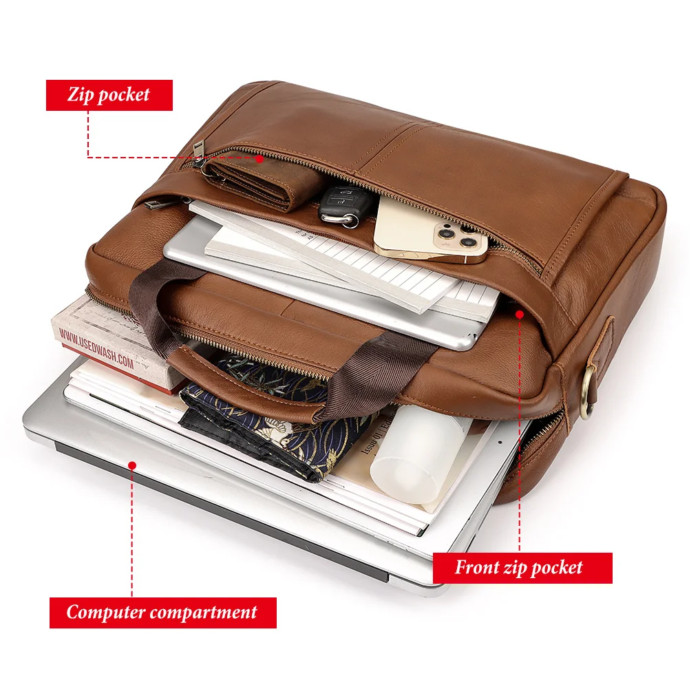 Whether you’re presenting to clients, commuting to the office, or traveling for business, this leather briefcase keeps you organized and looking professional. During important client meetings, the sophisticated design creates an impression of competence and attention to detail. The multiple compartments keep documents pristine and accessible, allowing you to retrieve materials smoothly during presentations. For business trips, the durable construction protects your laptop and documents while fitting easily under airplane seats or in overhead compartments. On daily commutes, the combination of style and functionality makes this an ideal companion for professionals who care about both appearance and practicality.