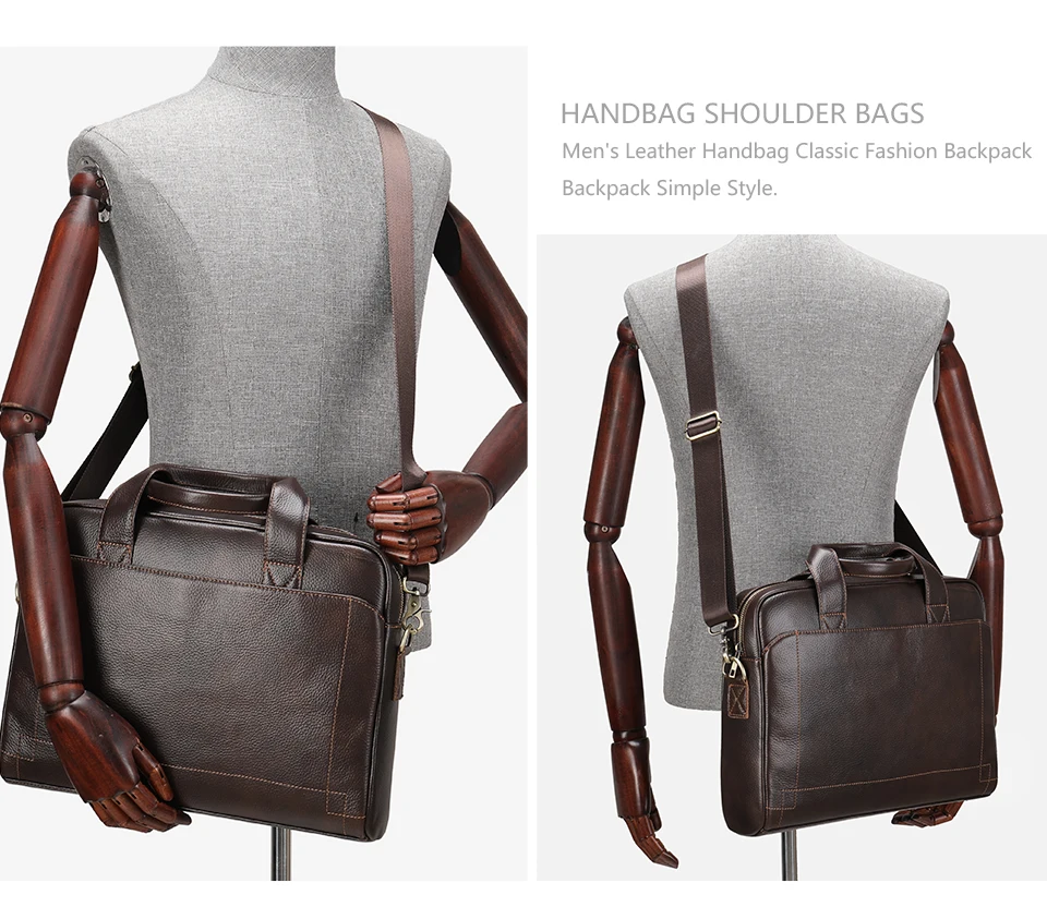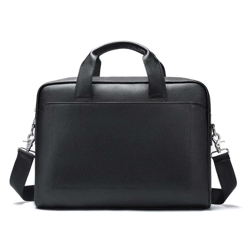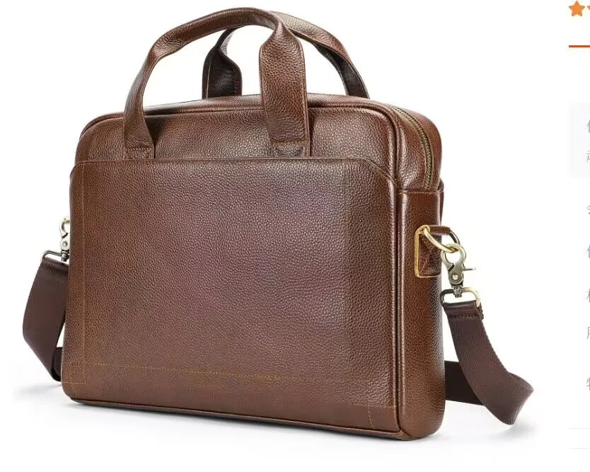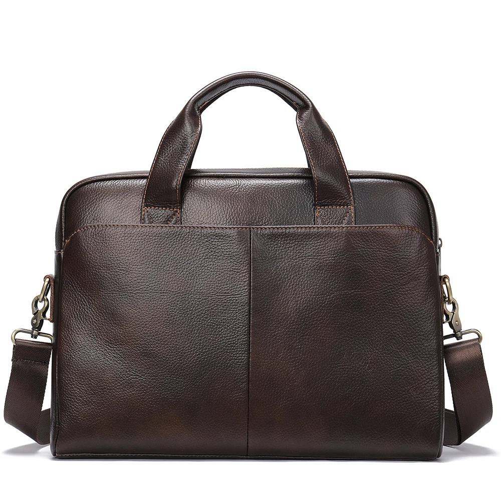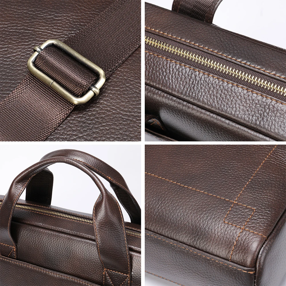 This briefcase showcases the superior quality of full-grain cow leather, known for its exceptional durability and distinctive natural character. The genuine leather exterior develops a rich patina over time, becoming more beautiful with each use while maintaining its professional appearance. Premium metal zipper hardware ensures smooth operation and lasting reliability, while the carefully finished edges and precise stitching demonstrate superior craftsmanship. The soft leather handle is reinforced for durability, providing comfortable carrying even when the bag is fully loaded with your business essentials. This investment piece is designed to withstand the demands of daily professional use while elevating your business attire.