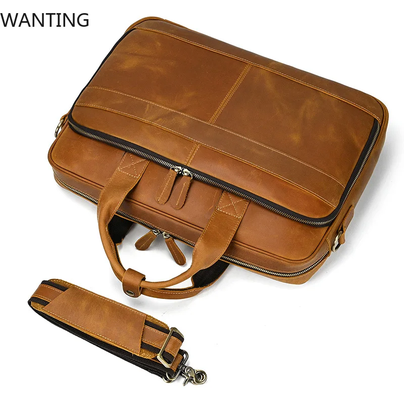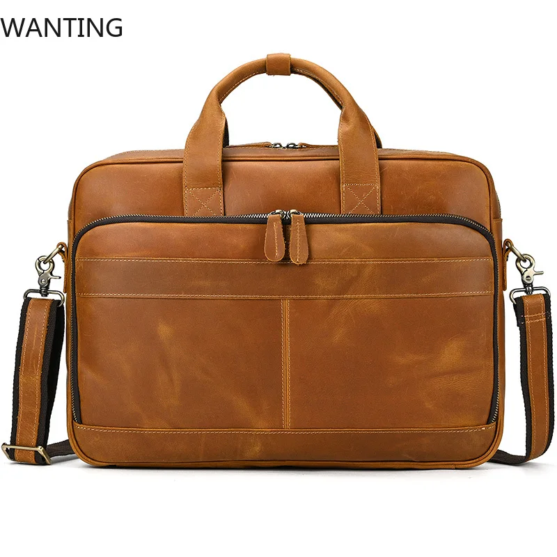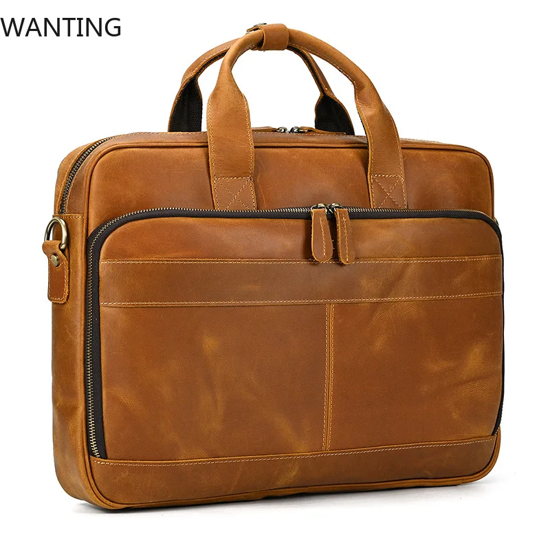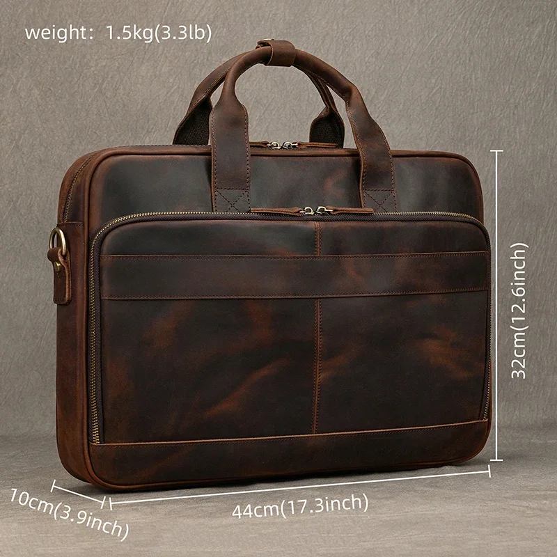 Elevate your professional image with this premium full grain cowskin leather briefcase designed specifically for business professionals. Featuring a spacious laptop compartment that accommodates devices from 15 to 17.3 inches and multiple organization pockets, this versatile bag seamlessly transitions from office meetings to business travel. Crafted with meticulous attention to detail and built to last through years of daily use, this vintage-styled briefcase combines exceptional functionality with sophisticated style that makes a statement in any professional setting.