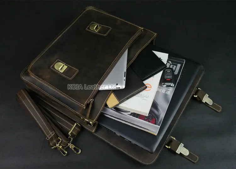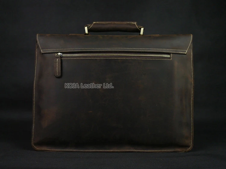 Elevate your professional presence with this exceptional Crazy Horse leather briefcase, meticulously crafted from premium full-grain cowhide leather. The distinctive Crazy Horse leather develops a unique patina over time, creating a personalized vintage appearance that tells your professional story. This natural aging process ensures each briefcase becomes uniquely yours, developing richer character with every use.