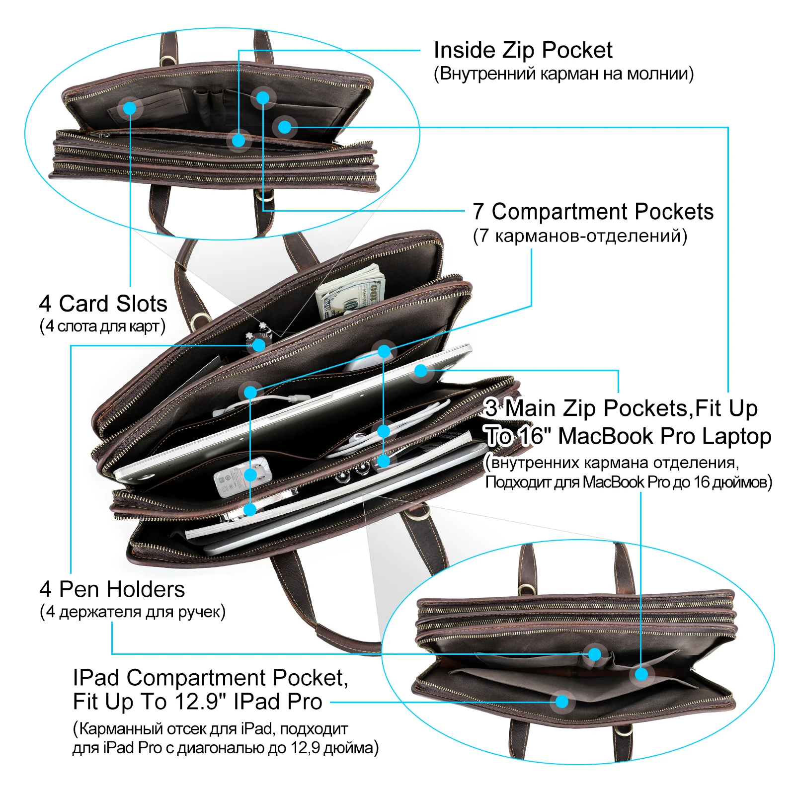 - Capacity: Holds a 16″ laptop, documents, smartphone, wallet, keys, and daily business essentials