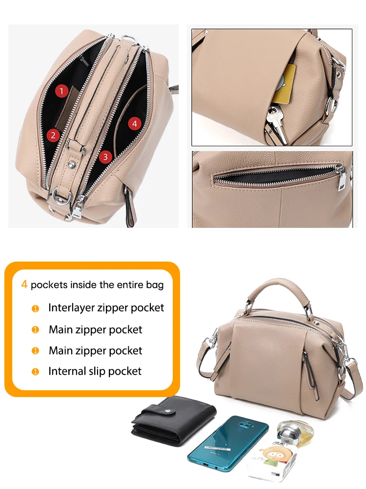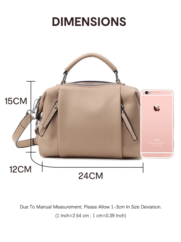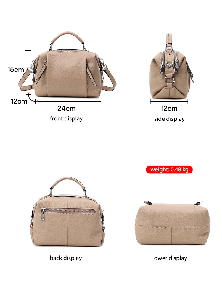 Invest in a quality handbag that combines timeless design with practical organization. This genuine leather Boston handbag offers the perfect blend of vintage charm and modern functionality to complement your everyday life. Add to cart now to elevate your accessory collection with this versatile, high-quality leather bag.