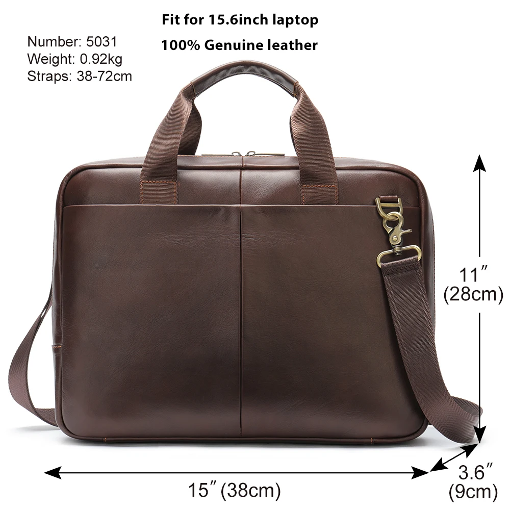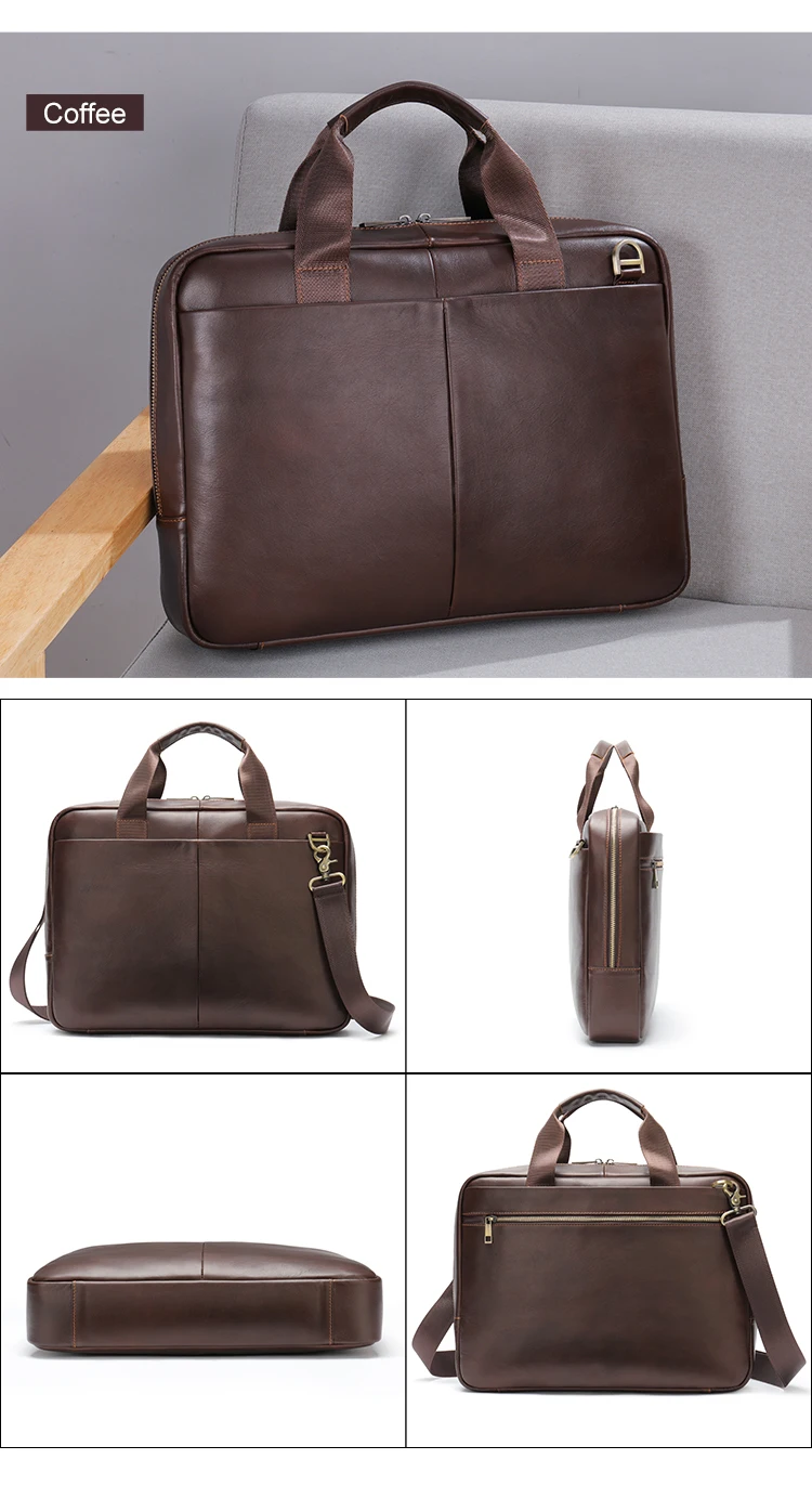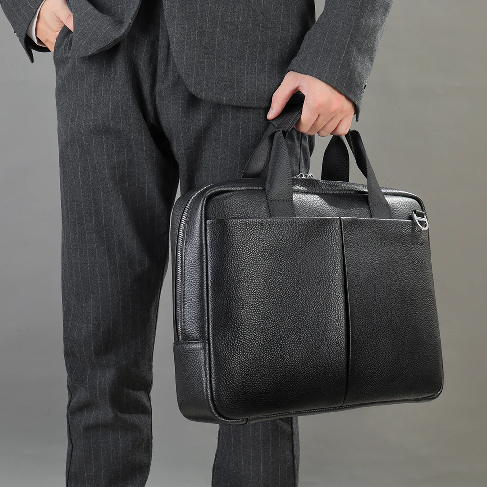 This briefcase showcases the exceptional quality of first-layer cowhide genuine leather, known for its durability and natural character. The full grain leather preserves the hide’s original texture, ensuring each briefcase develops a unique patina over time that tells the story of your professional journey. Premium metal hardware complements the leather with secure zipper closures that operate smoothly even after years of use. Precise stitching and refined edge finishing demonstrate the superior craftsmanship that went into creating this professional accessory. The natural properties of genuine cowhide leather provide exceptional durability while projecting an image of established success and attention to detail.