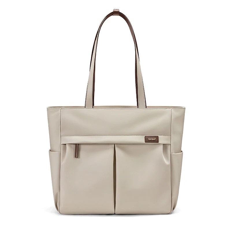 Professional Nylon Work Tote Bag with Laptop Compartment – Elegant Khaki Shoulder Bag for Women