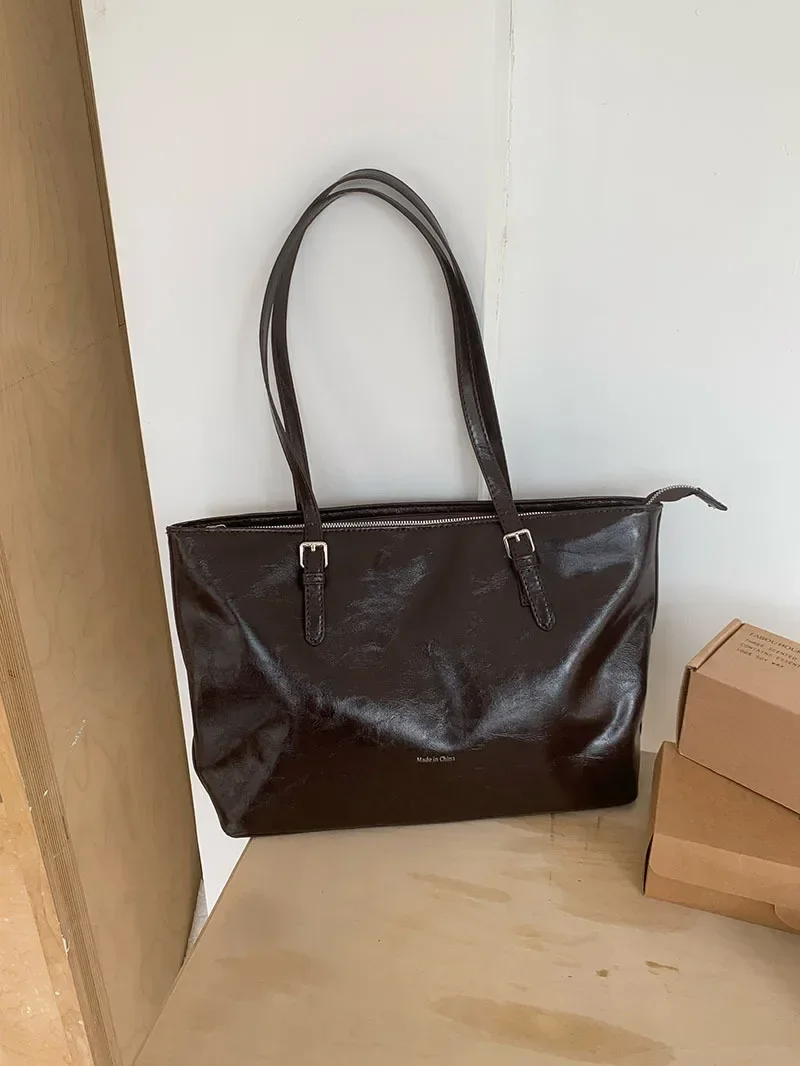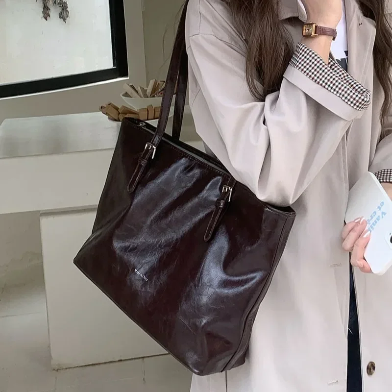 This spacious tote offers ample room for daily essentials while maintaining a professional silhouette that doesn’t overwhelm your frame. The generous interior easily accommodates a standard tablet, notebooks, makeup bag, wallet, water bottle, and other daily necessities. The soft structure allows for flexible capacity, expanding slightly when needed for additional items. Perfect for daily commuters who need to carry multiple items without sacrificing style.