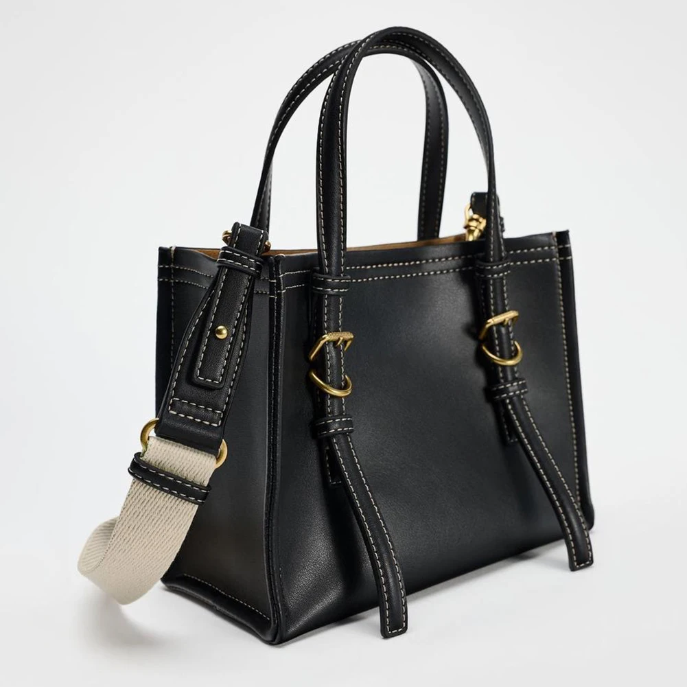 The classic tote silhouette with vintage-inspired top handles creates a timeless professional aesthetic that complements any work wardrobe. The structured design maintains a polished appearance throughout your day, while the clean lines and minimalist detailing project sophistication and attention to detail. This versatile design works equally well in conservative office environments and creative professional settings. The bag features multiple carry options with both top handles and an adjustable crossbody strap, adapting to different commuting needs and professional situations.