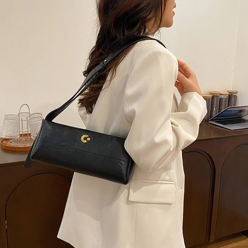 This underarm shoulder bag is crafted from high-quality vegan leather that offers the premium look and feel of genuine leather while remaining cruelty-free and environmentally conscious. The material features a subtle texture that resists scratches and maintains its appearance through daily use. Premium hardware elements, including the detachable chain and secure clasps, add both functionality and visual appeal with their polished finish. Precise edge finishing and reinforced stitching throughout ensure this bag maintains its structure and elegant silhouette even with regular use. The vegan leather construction provides the professional aesthetic you desire while being easier to clean and maintain than traditional leather.
