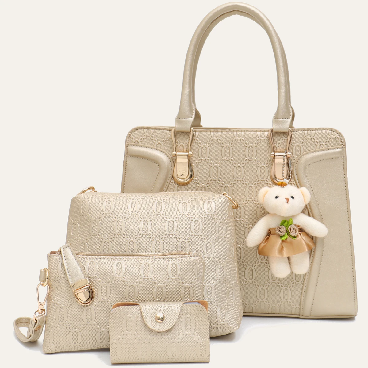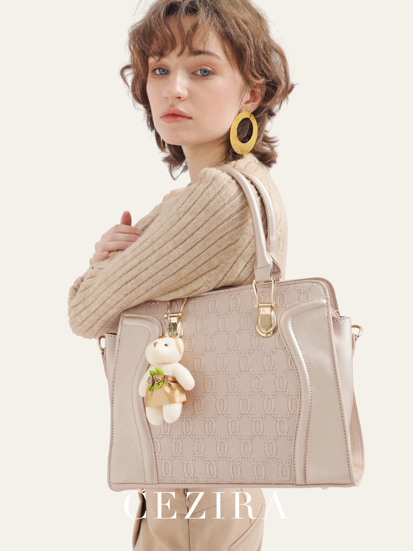 This versatile 4-piece set adapts seamlessly to your professional life. During important client presentations, the sophisticated trapeze tote carries your laptop, portfolio, and presentation materials while creating an impression of competence and attention to detail. For daily office work, the various compartments keep your essentials organized and accessible.
