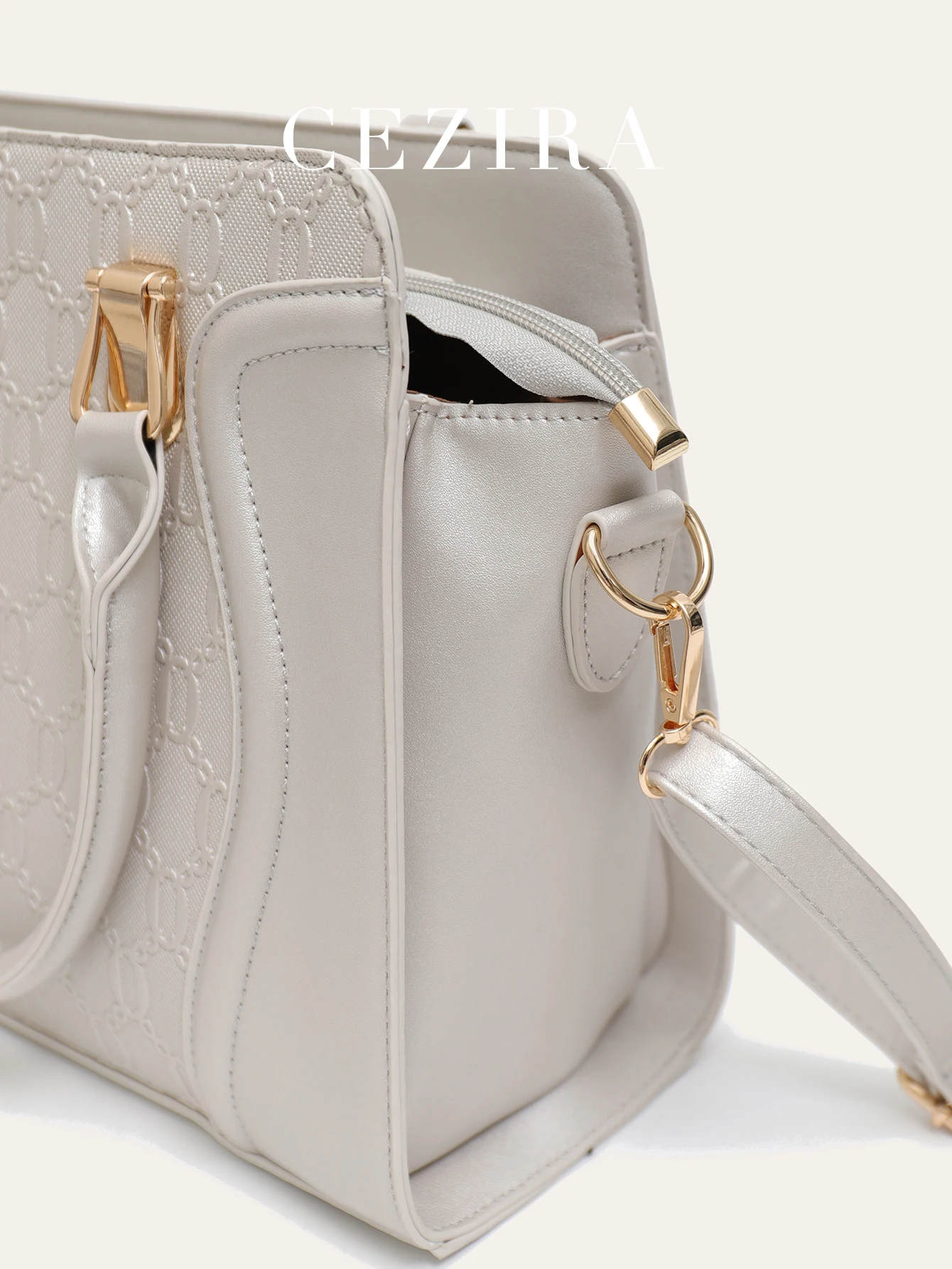 These beautifully designed bags feature a timeless trapeze silhouette that projects confidence and professional polish. The geometric pattern adds subtle visual interest while remaining appropriate for corporate environments. Available in classic, professional colors, this collection works seamlessly with your existing wardrobe.