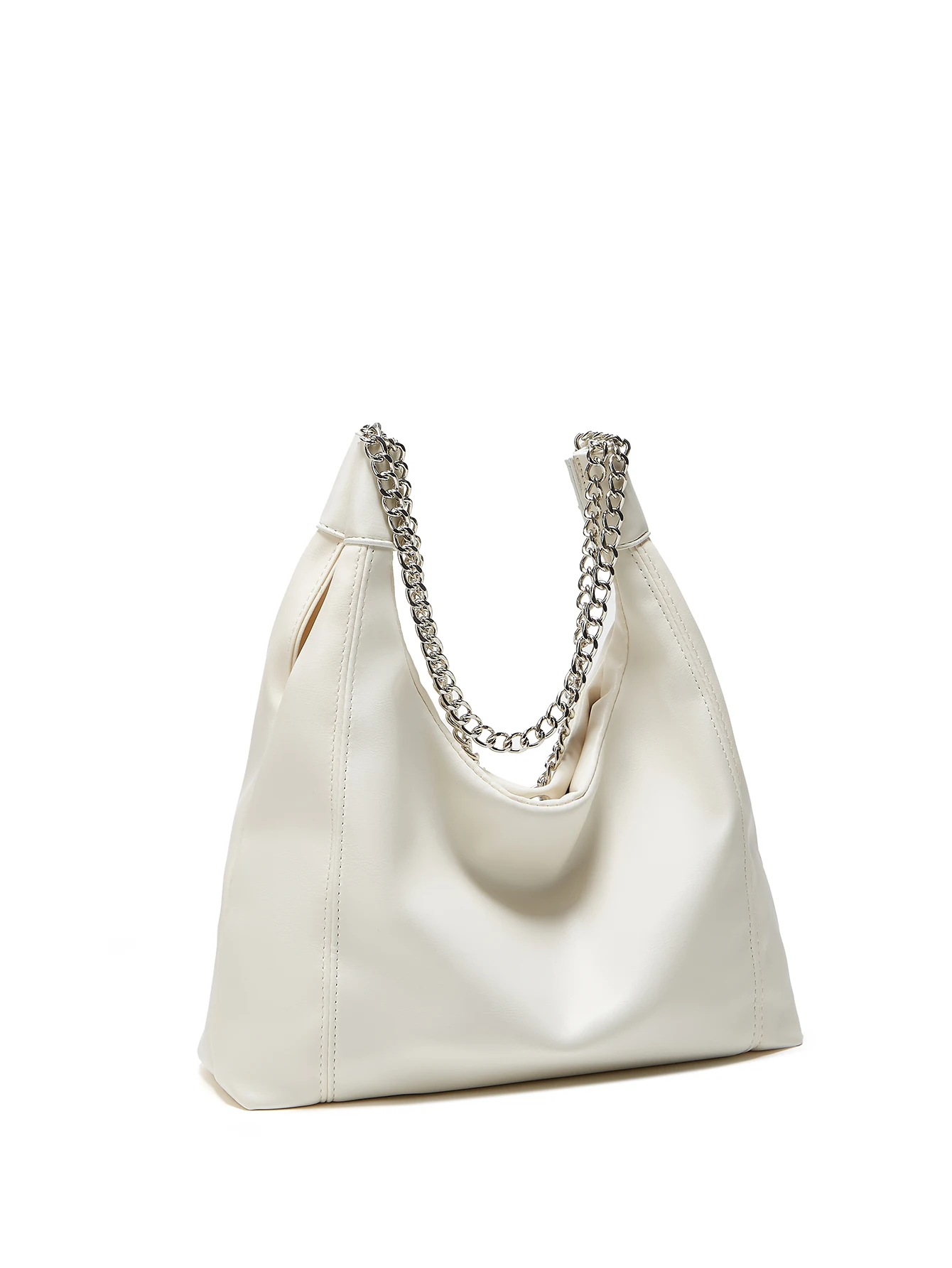 The neutral, timeless design ensures this tote coordinates seamlessly with your professional wardrobe, while the decorative chain element adds a contemporary touch that elevates the overall aesthetic. This thoughtful balance of classic and modern design elements creates a bag that remains stylish season after season.
