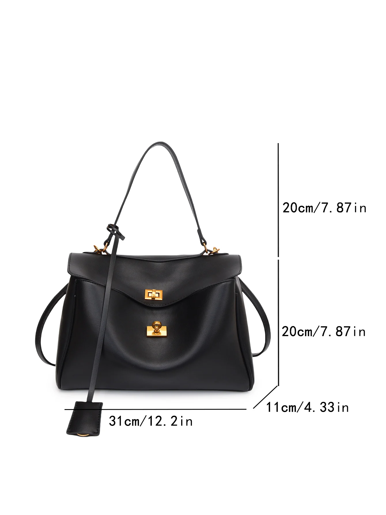 This tote is expertly crafted from high-quality polyurethane (PU) vegan leather that offers the luxurious look and feel of genuine leather without the use of animal products. The material features an advanced texture that resists scratches and maintains its appearance even with regular use. Premium metal hardware in a subtle finish complements the clean lines of the bag, while precise stitching and reinforced edges ensure long-lasting durability. The polyester lining provides additional structure and protection for your belongings, making this a bag that remains beautiful and functional season after season.
