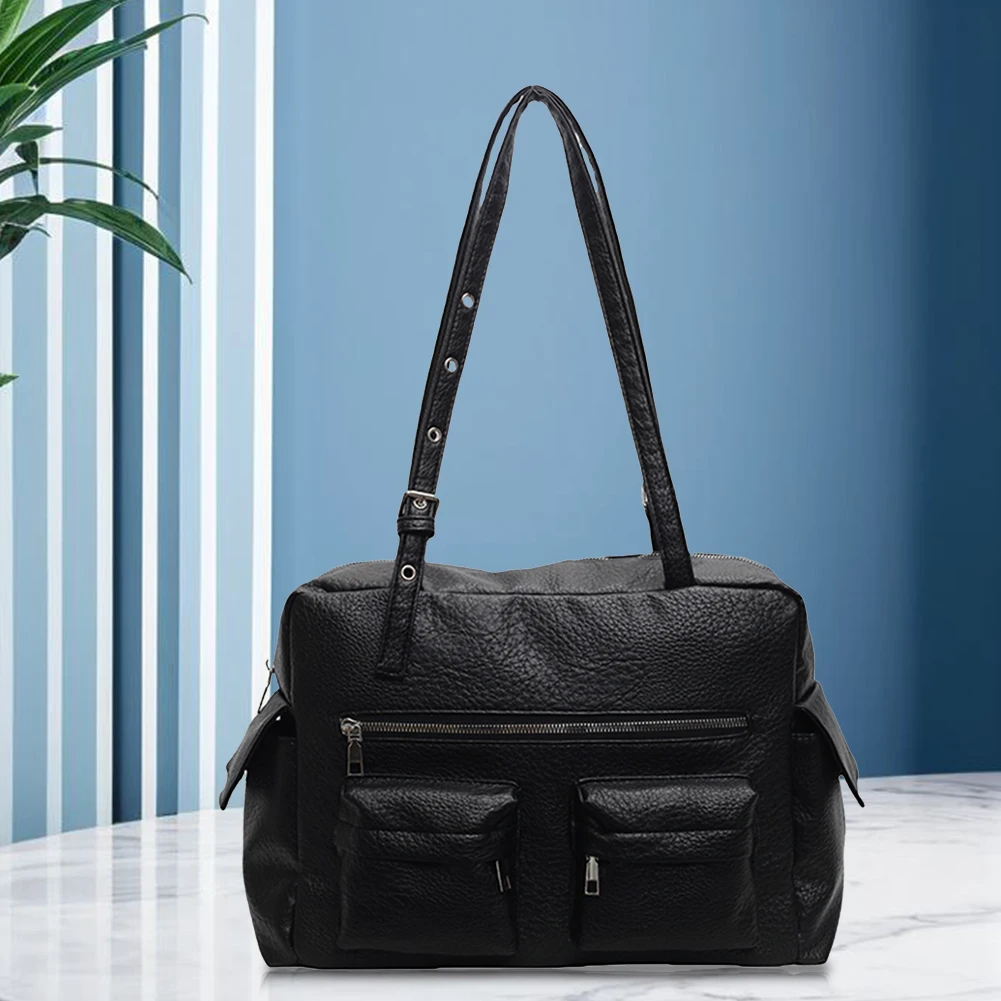 This tote is crafted from high-quality PU leather, offering the sophisticated look and feel of genuine leather with enhanced durability and ethical advantages. The vegan leather exterior resists scratches and water spots while maintaining its elegant appearance throughout your workday. Premium metal hardware adds a refined touch while ensuring long-lasting functionality—zippers glide smoothly and clasps secure your belongings with confidence. Meticulous stitching throughout reinforces structural integrity, preventing fraying or separation even with daily use. The result is a professional bag that maintains its polished appearance season after season while aligning with modern sustainable values.