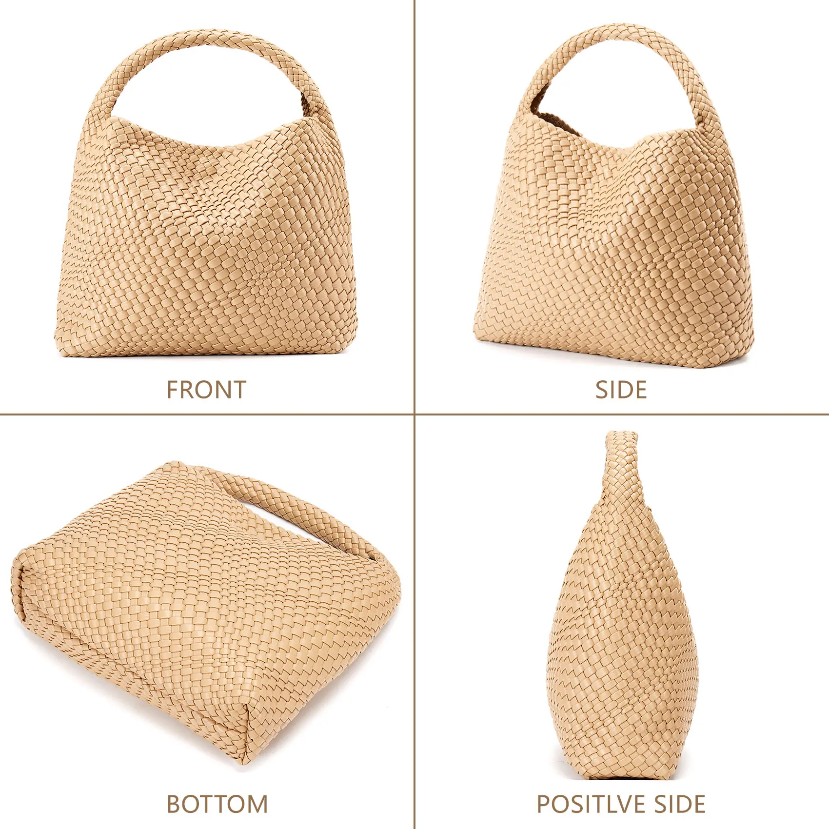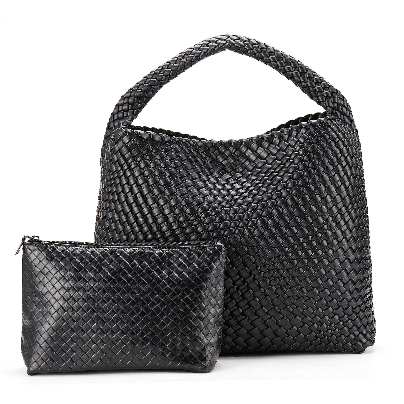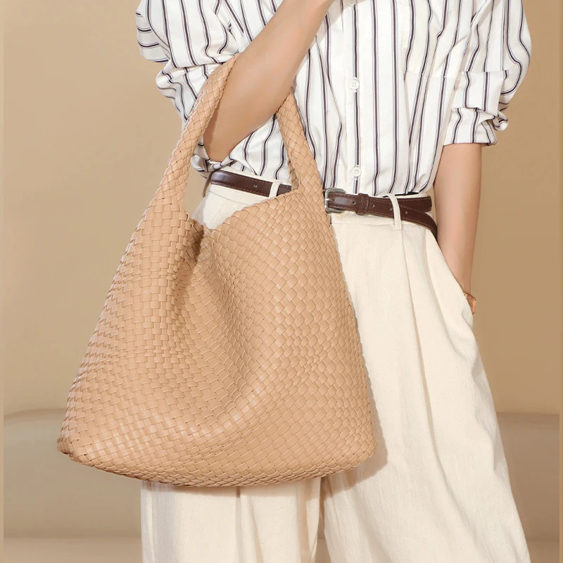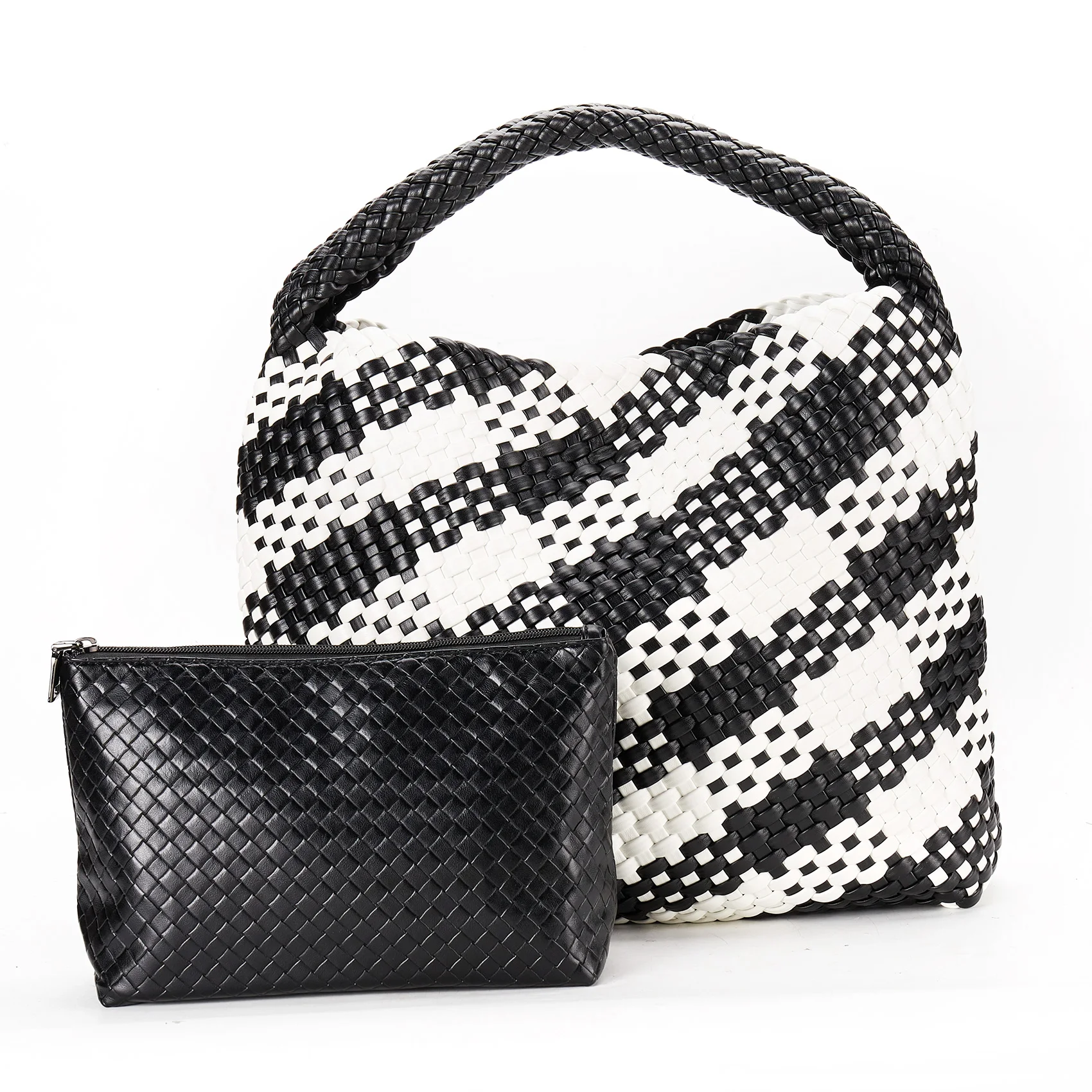 - Material: Vegan leather (PU) with distinctive woven pattern