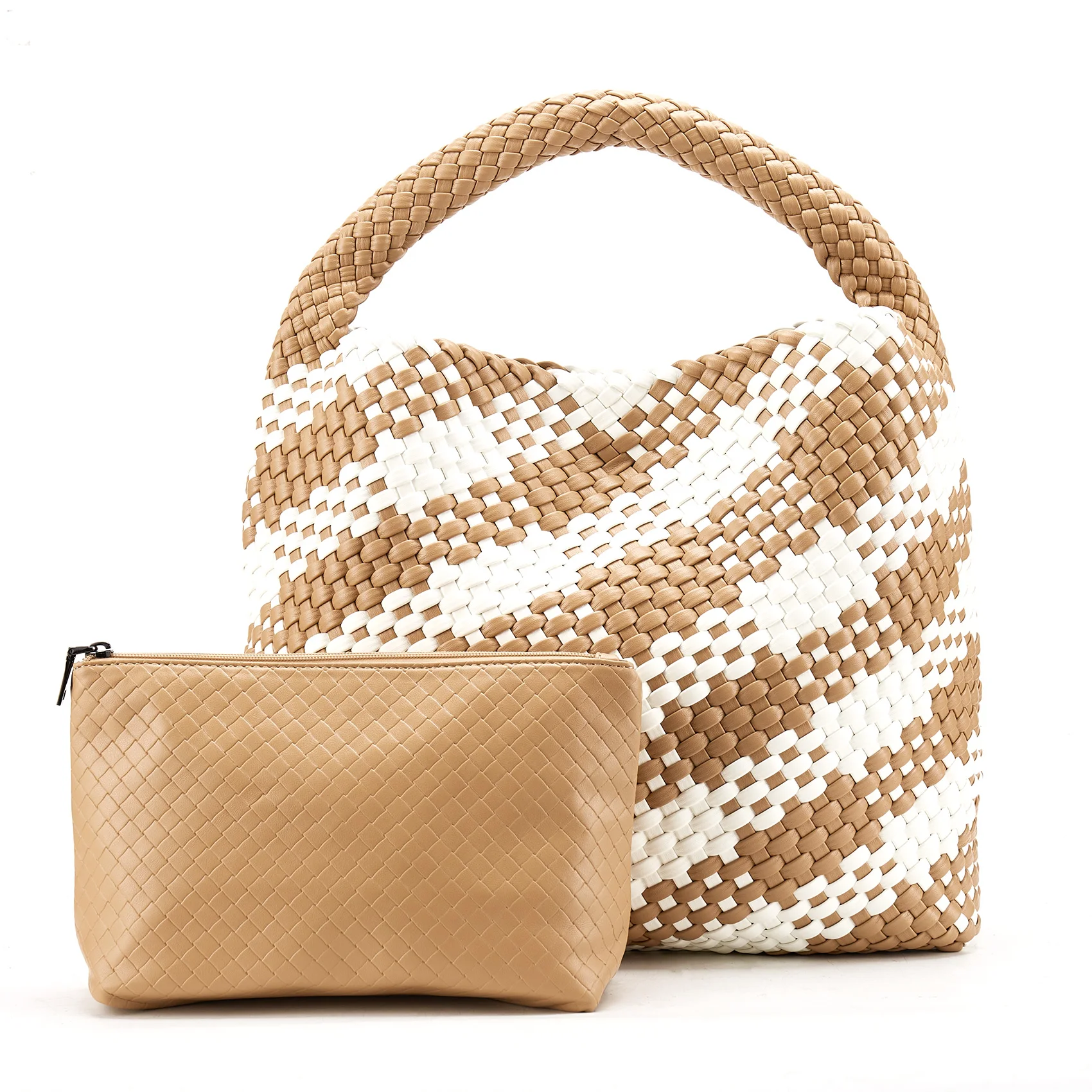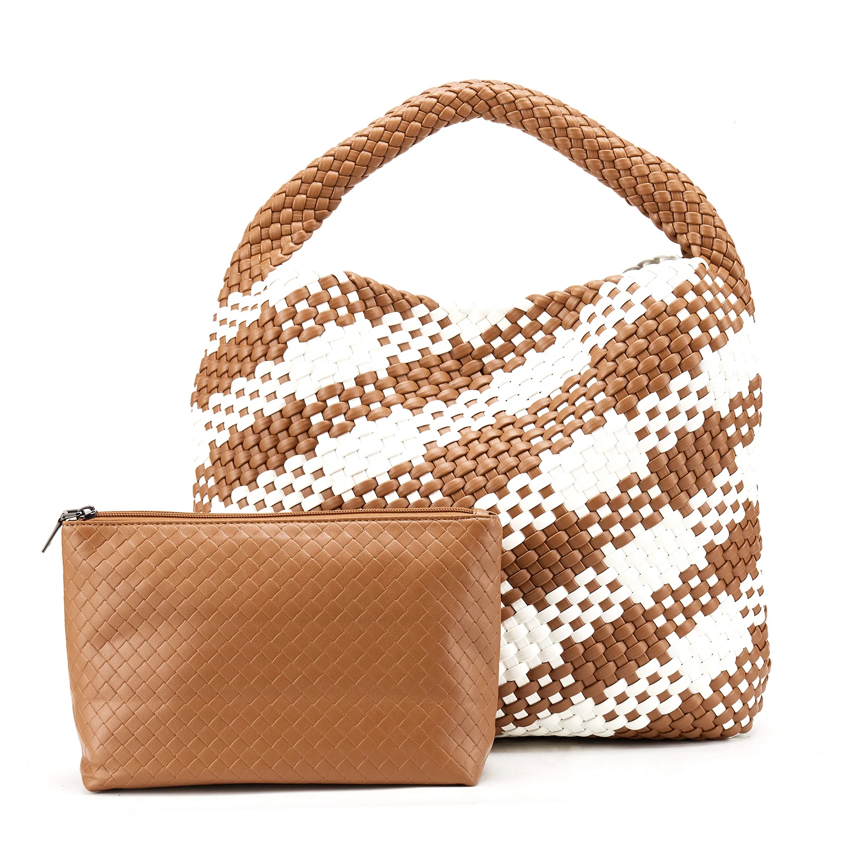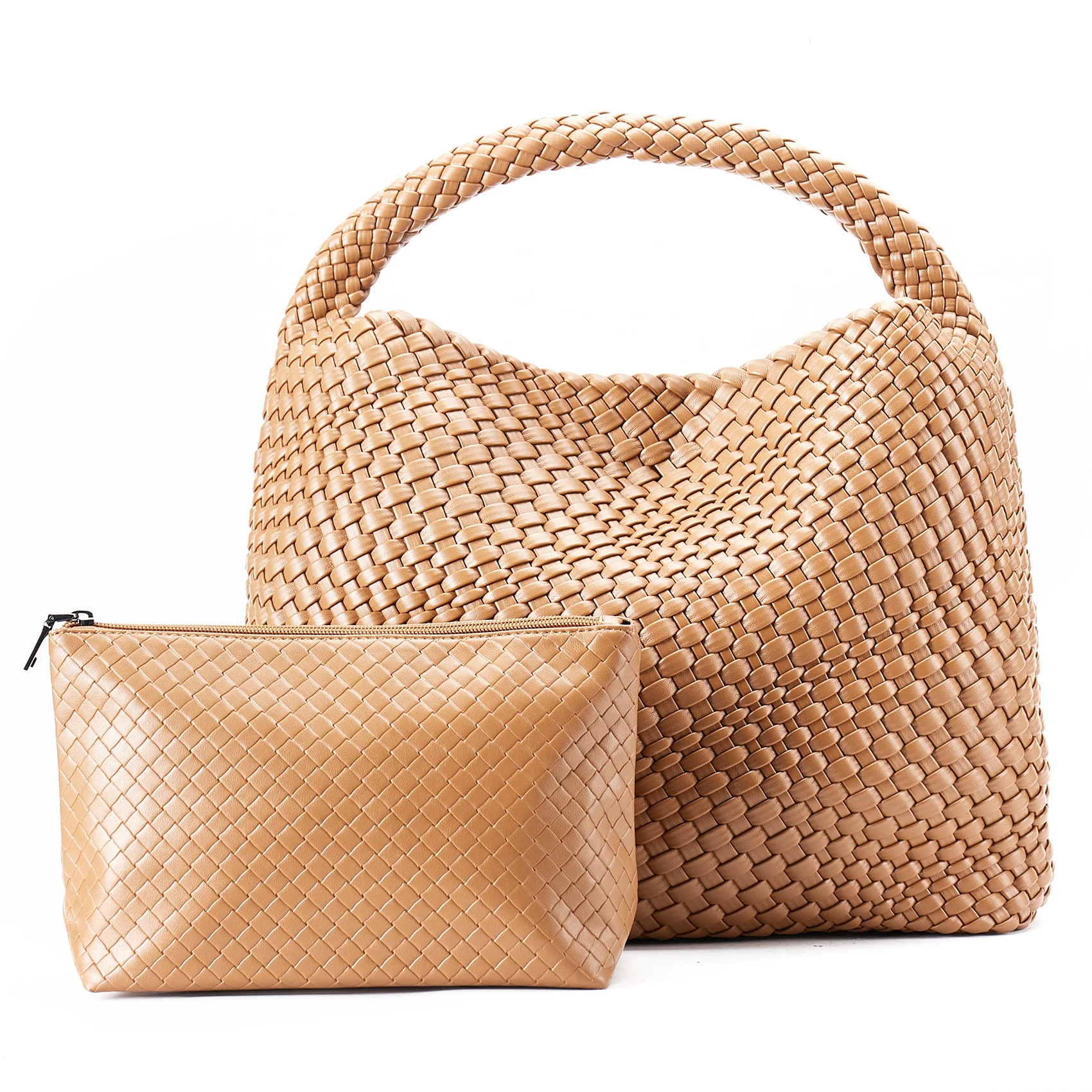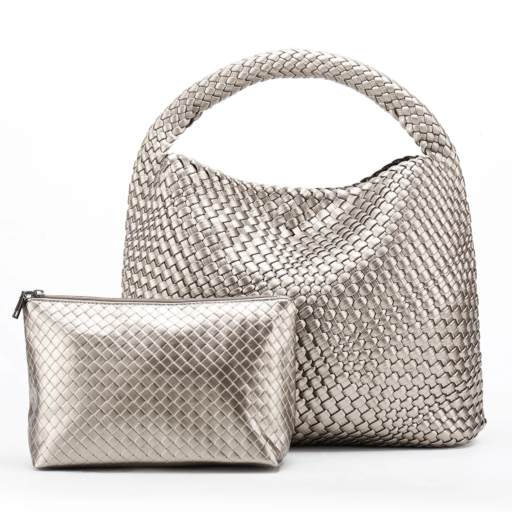 - Material: Vegan leather (PU) with distinctive woven pattern
