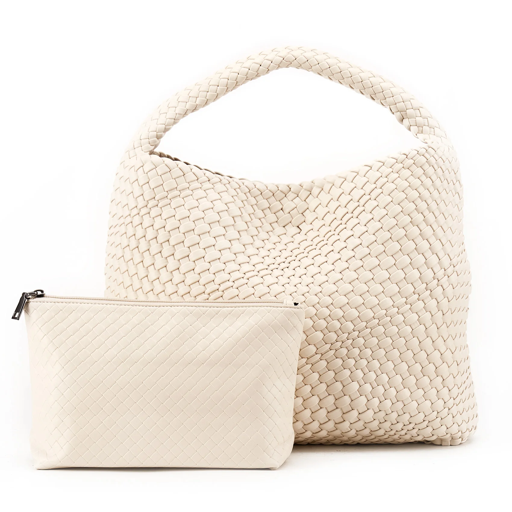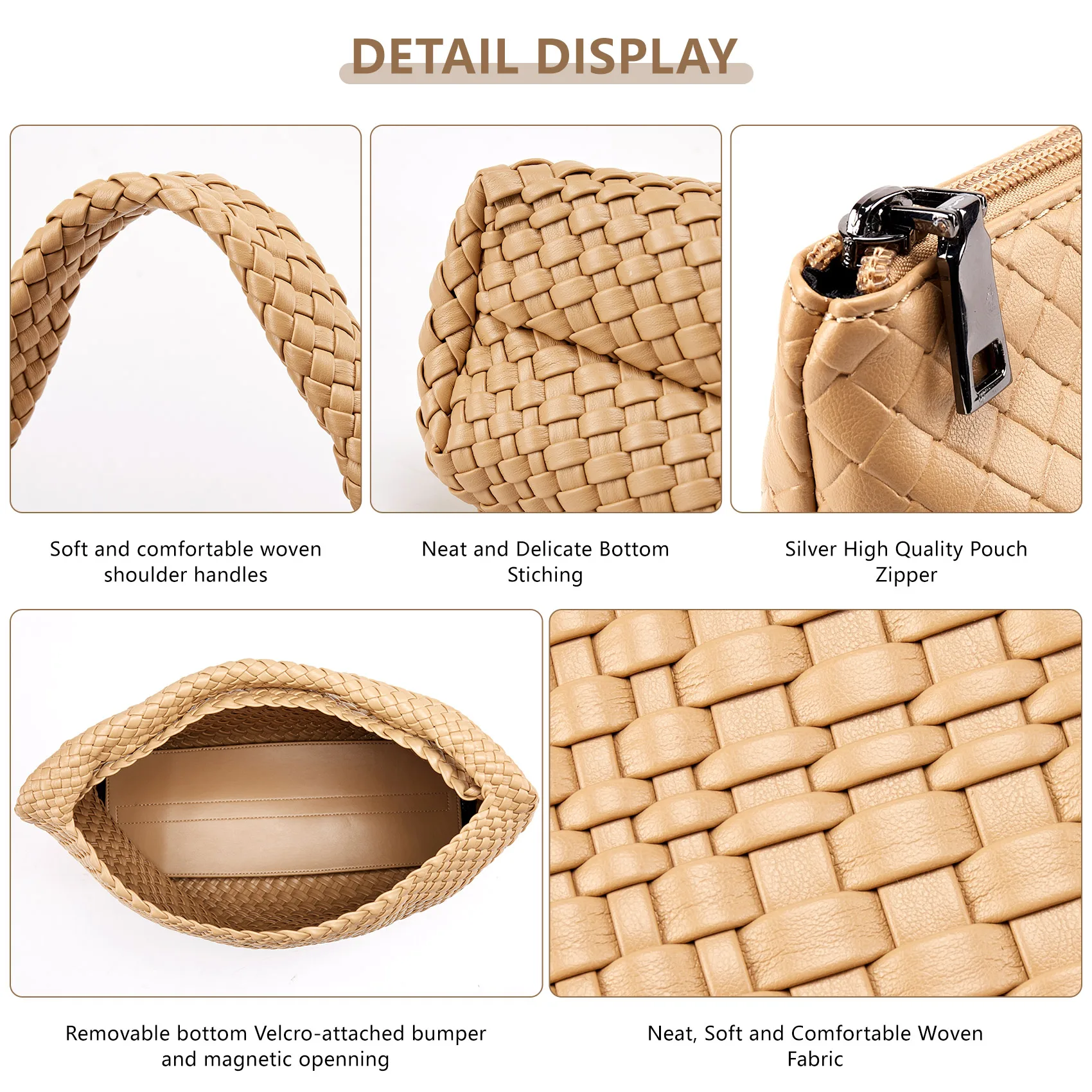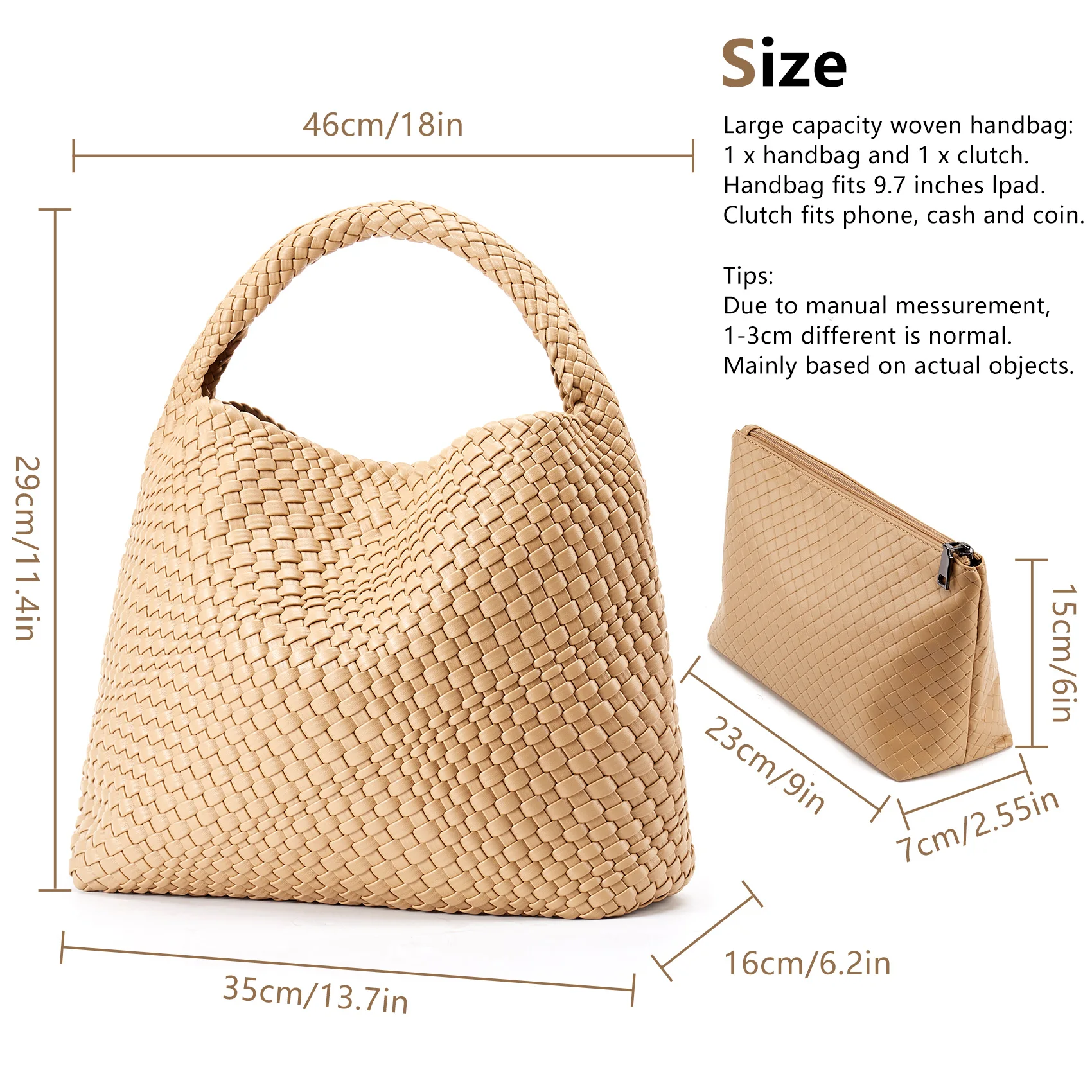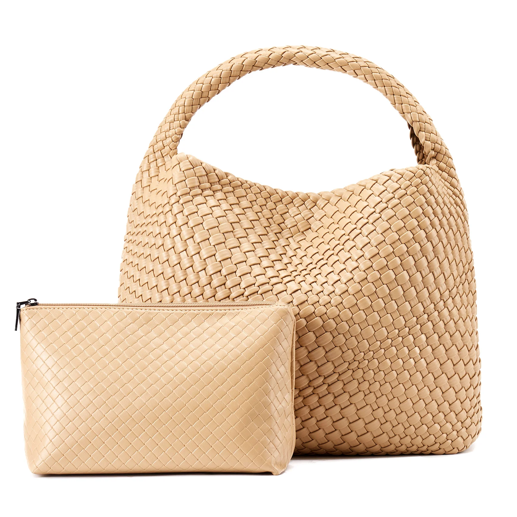 - Material: Vegan leather (PU) with distinctive woven pattern