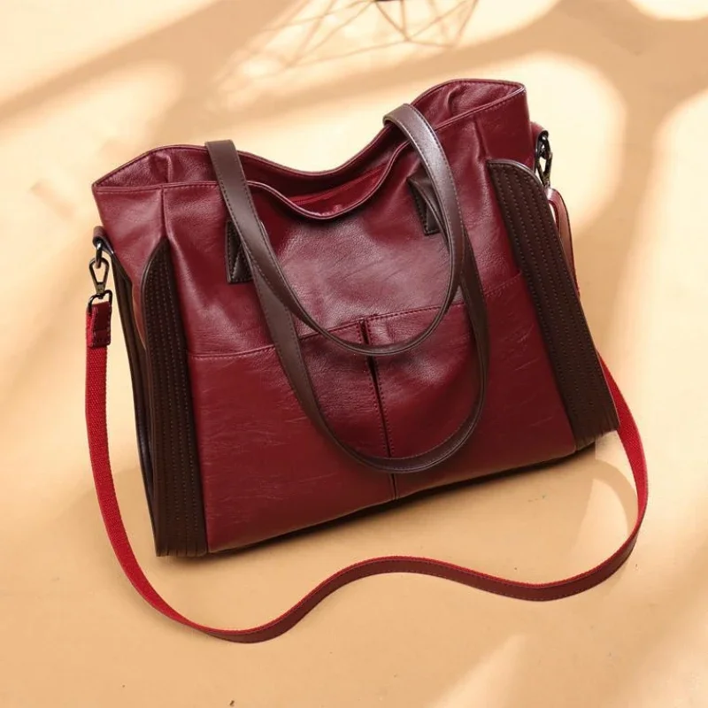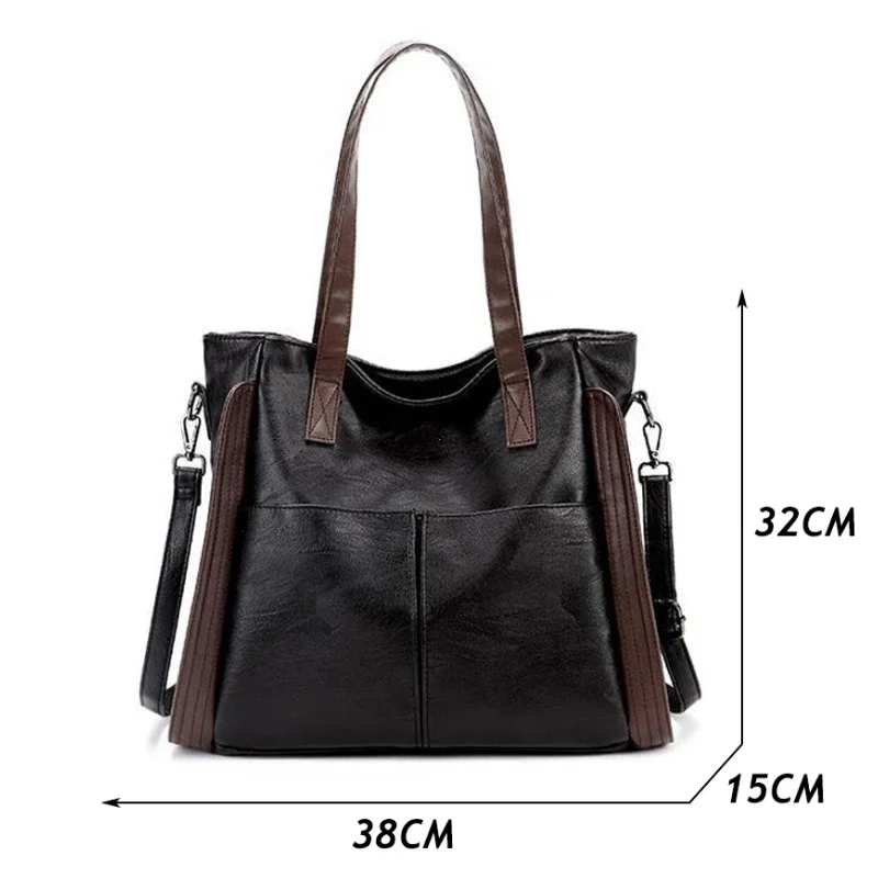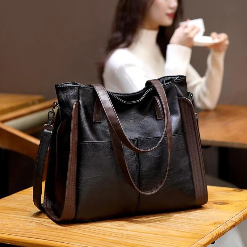 Vintage PU Leather Tote Bag with Large Capacity for Women – Professional Casual Shoulder Crossbody Handbag