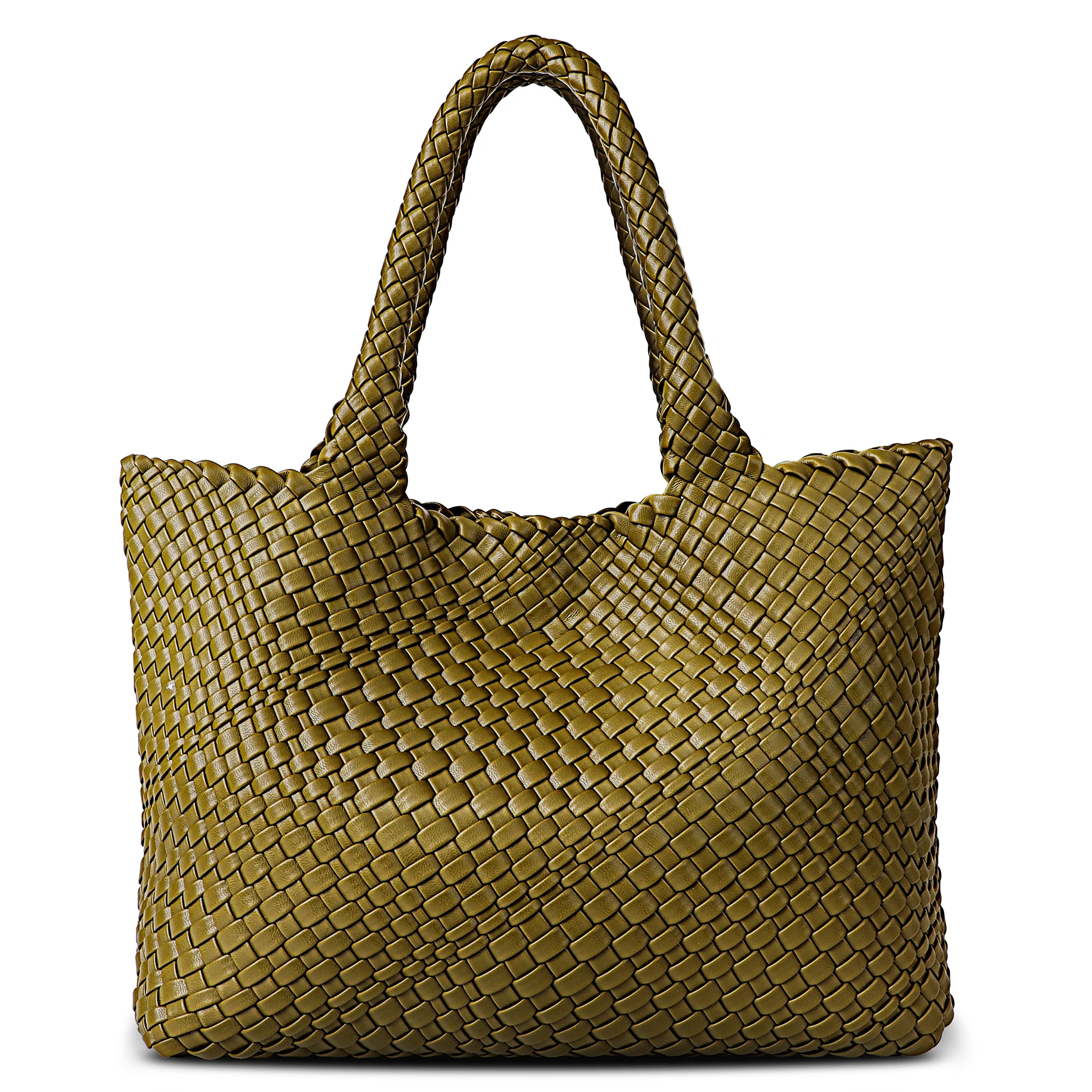 Elevate your professional image with this elegantly woven vegan leather tote designed specifically for the modern woman. Featuring a sophisticated hand-woven texture and versatile top handles, this adaptable bag seamlessly transitions from office meetings to weekend getaways. Crafted with attention to detail and built for everyday use, this stylish tote combines functionality with refined aesthetics that make a statement in any setting, professional or casual.