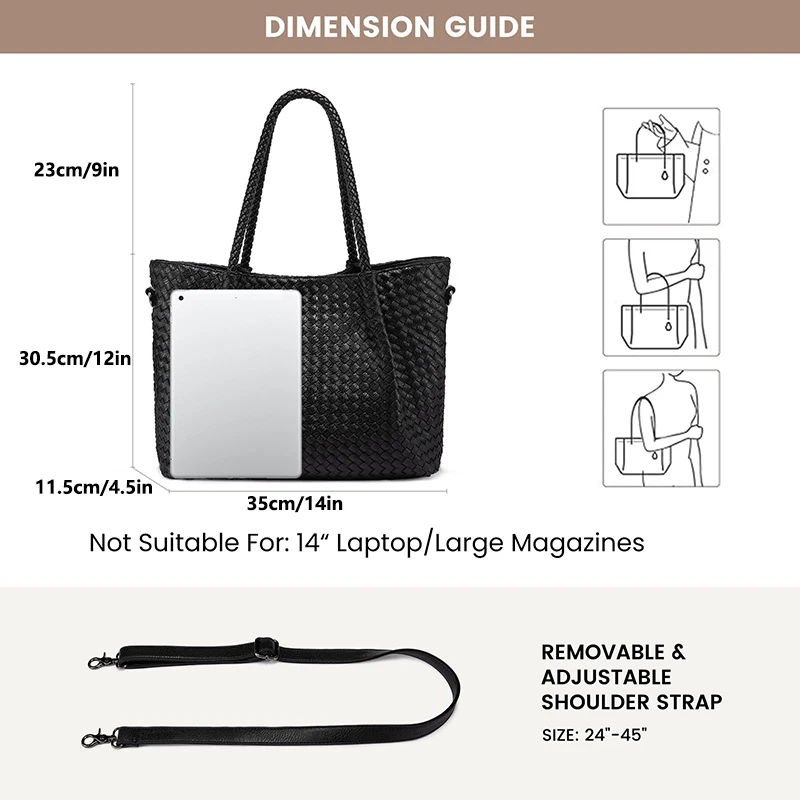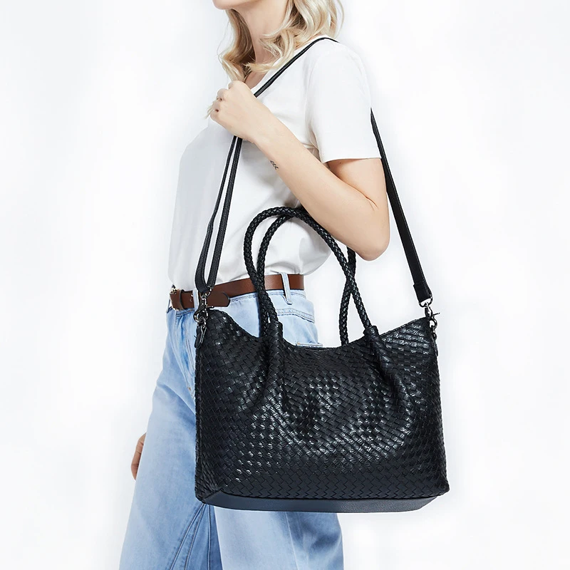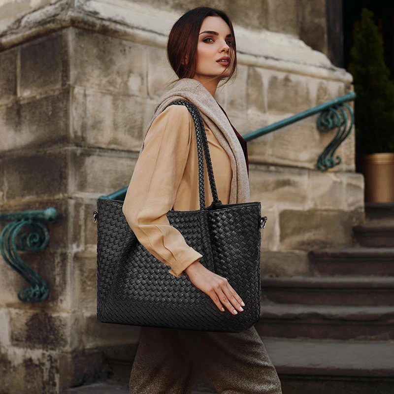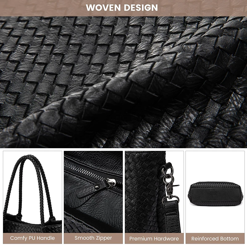 - Material: Premium vegan leather (PU) with distinctive woven pattern