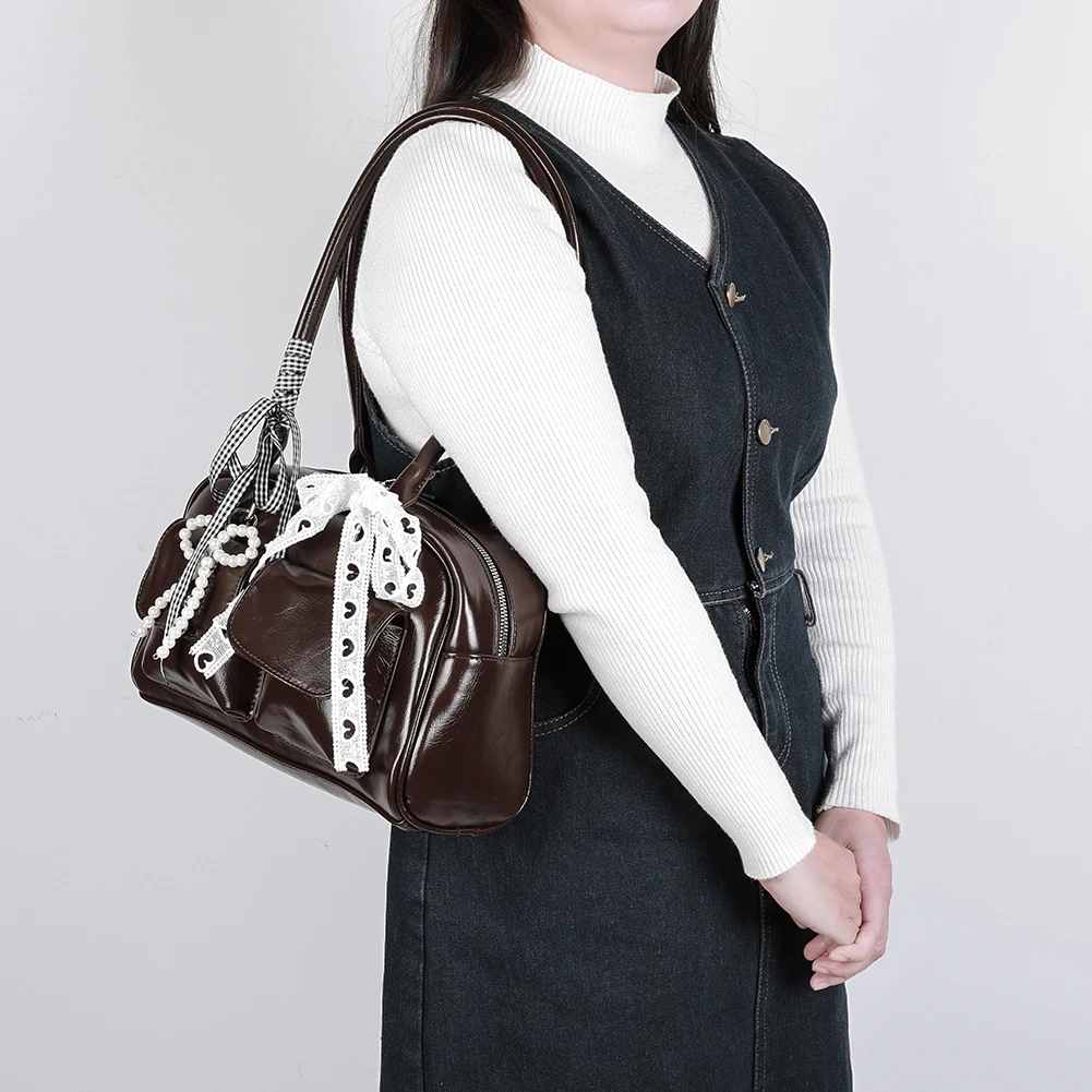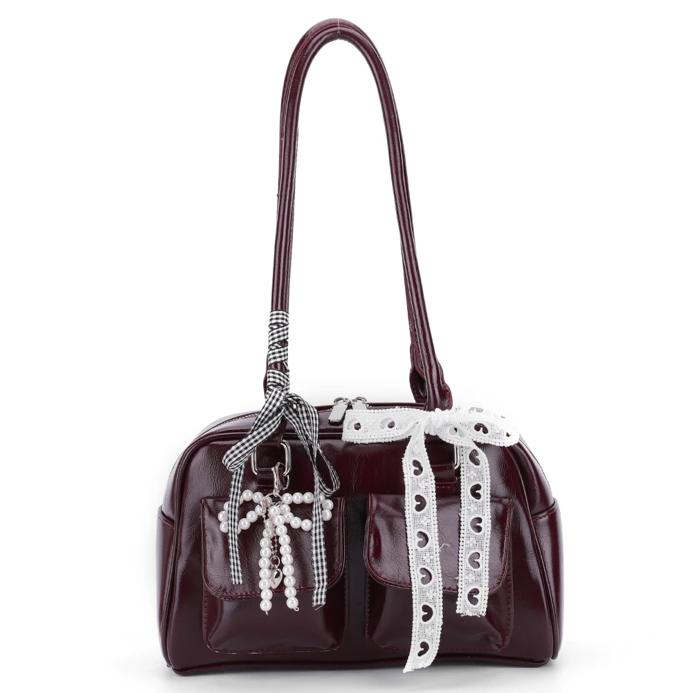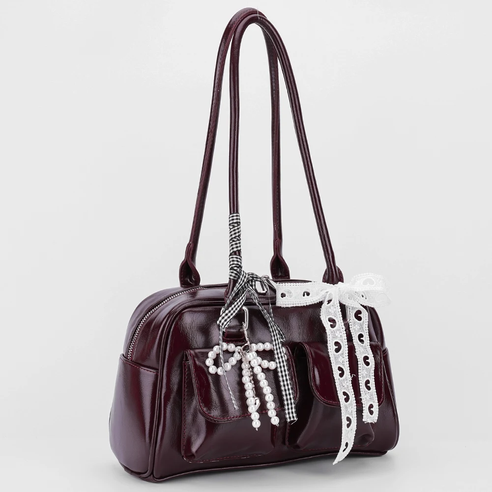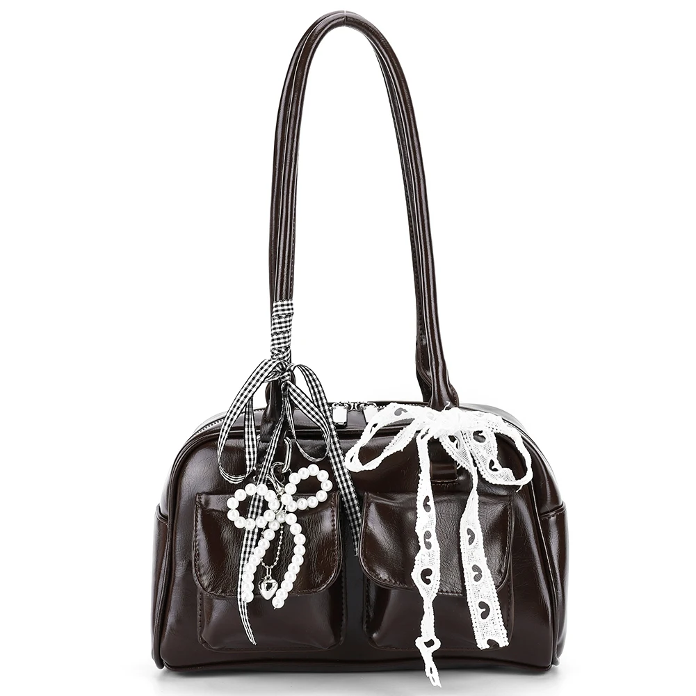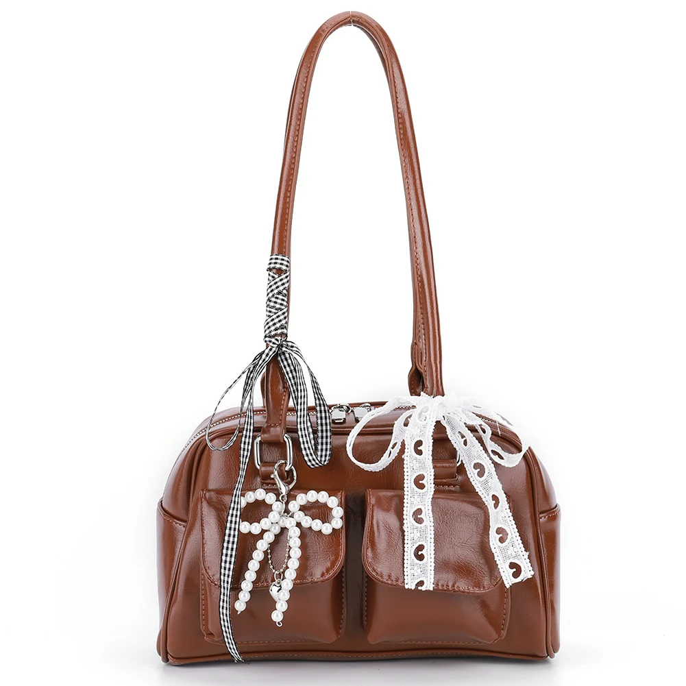 Y2K Bow Knot PU Leather Shoulder Bag – Sweet Underarm Tote with Double Pockets for Women