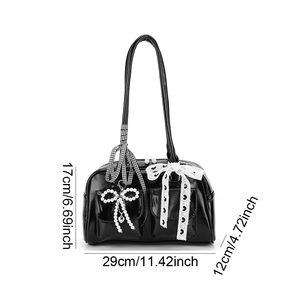 • Style: Y2K-inspired underarm/bowling bag silhouette with decorative bow knot